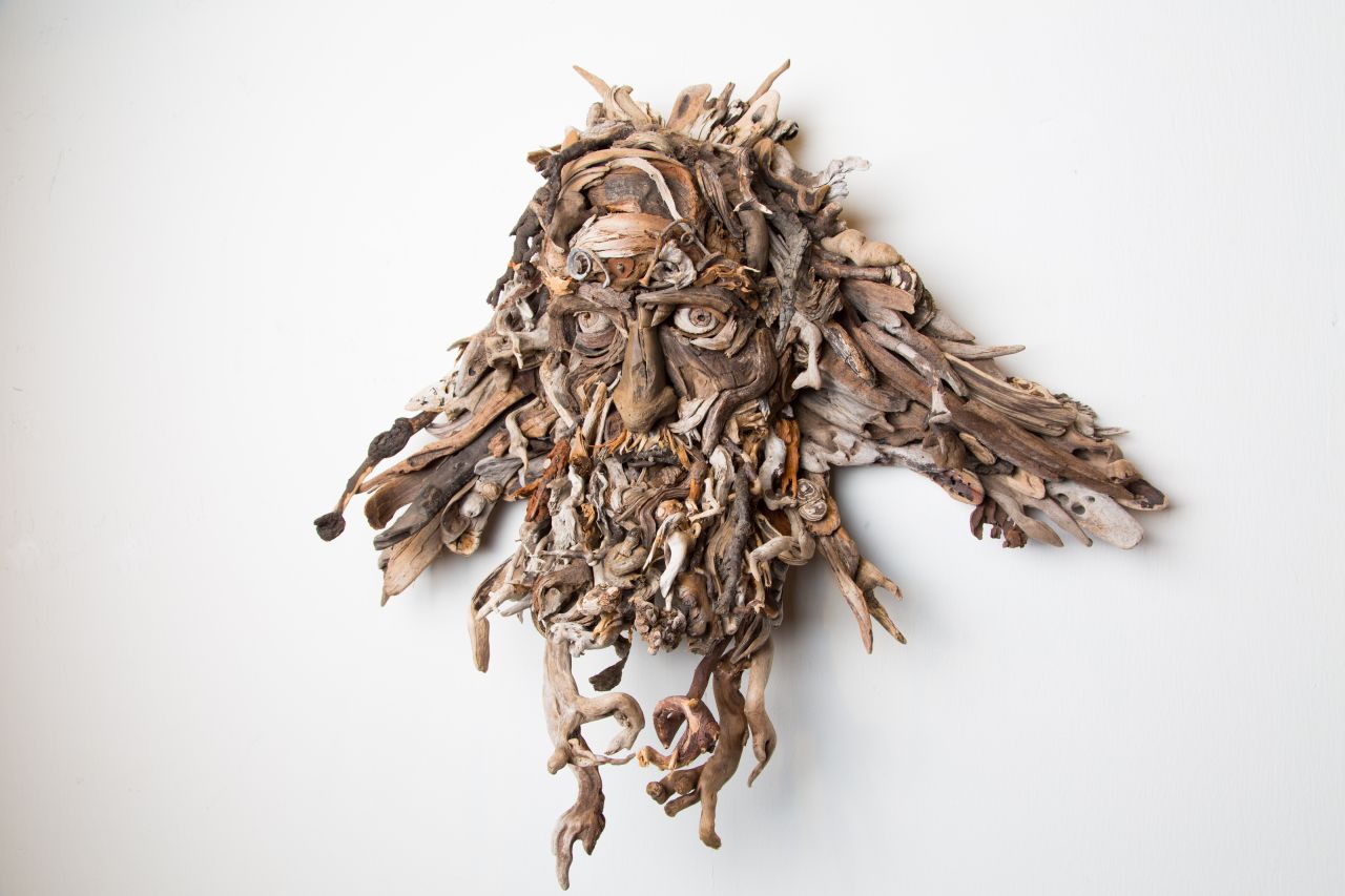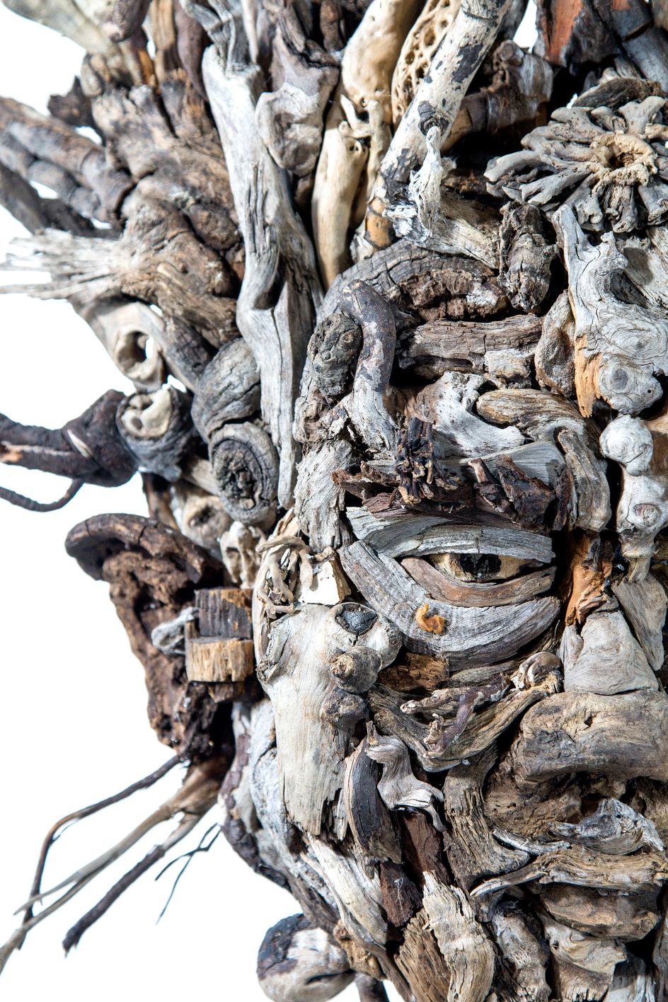 Bennett Ewing, better known as Eyevan Tumbleweed, is a nature lover and artist who specialises in wood sculpture, creating a series of visages comprised of pieces of wood he collects from mountains, deserts, swamps, forests, rivers and beaches.